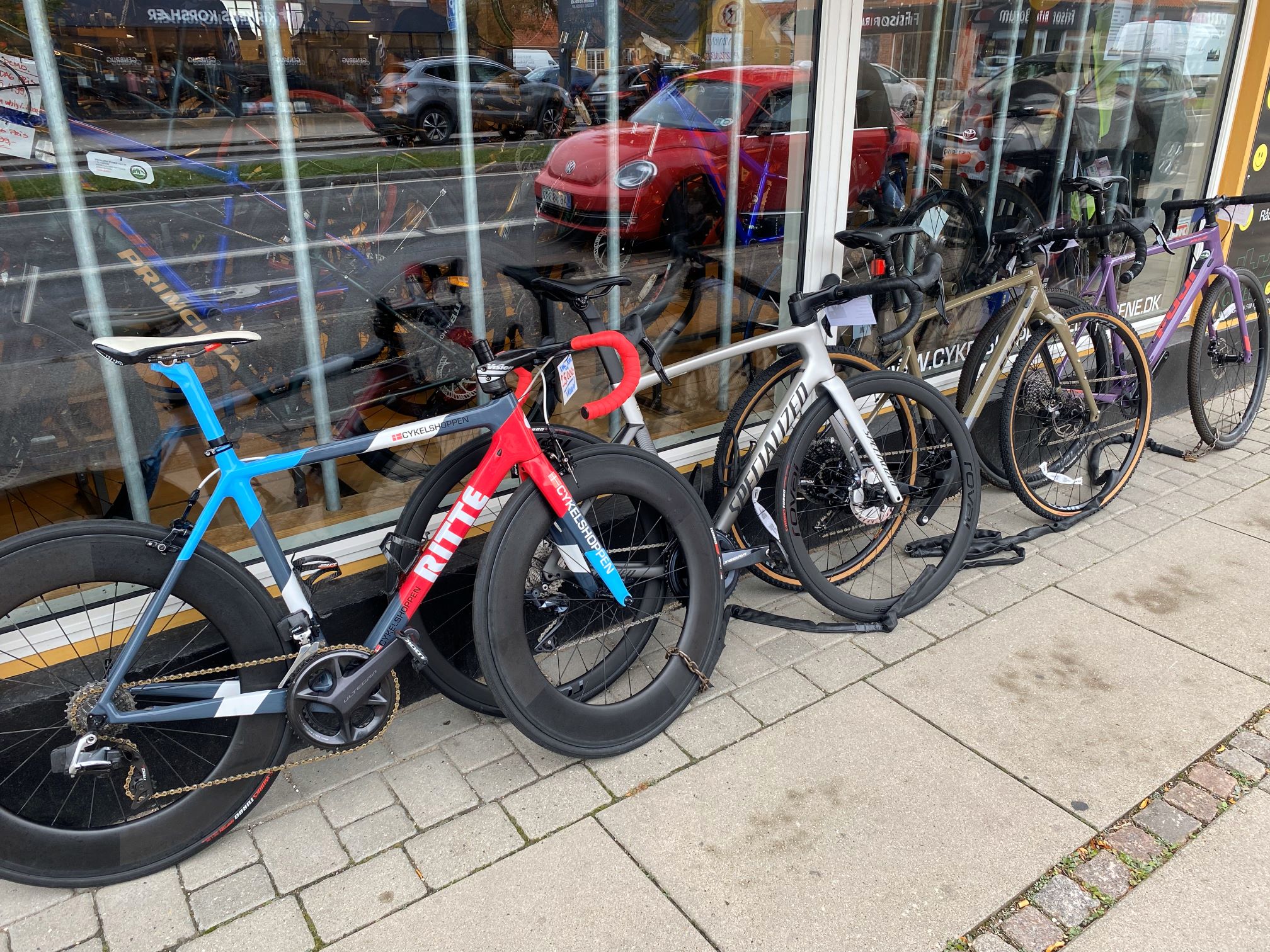 Masser af nyere brugte carbon racer-cykler på lager i forskellige størrelser og mærker.